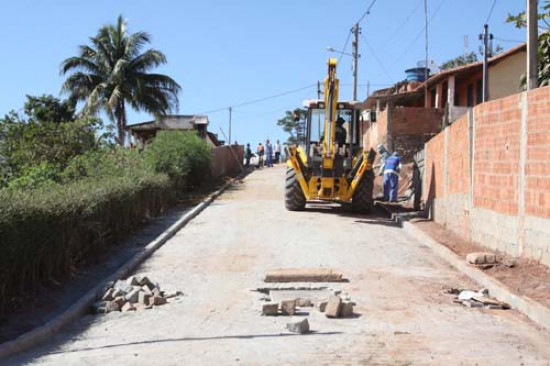Já foram instaladas manilhas de 1,10m, que vão resolver de vez os problemas no local. No total são 20 ruas que recebem pavimentação em paralelepípedos. O trabalho se complementa na parte central do distrito, onde o asfalto vai atender aos moradores na rua principal.