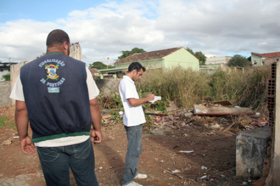 Pelo menos 100 proprietários de terrenos baldios estão sendo notificados, por mês, pela Coordenadoria de Fiscalização de Posturas por meio de publicação de editais. As notificações tem por objetivo cercar os espaços para evitar que moradores depositem lixo. Além deles, em média, 10 donos de imóveis que são identificados e localizados ainda durante a fiscalização recebem notificação para providenciar a limpeza e, quando necessário, o fechamento do terreno. O prazo de 30 dias para o cumprimento das medidas é o mesmo para todos, conforme determina a lei 8.243/11, publicada em Diário Oficial (DO) no último dia 13 de julho e que alterou o Código de Postura Municipal.