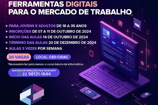 CIDAC com inscrições para curso Ferramentas Digitais para o Mercado de Trabalho