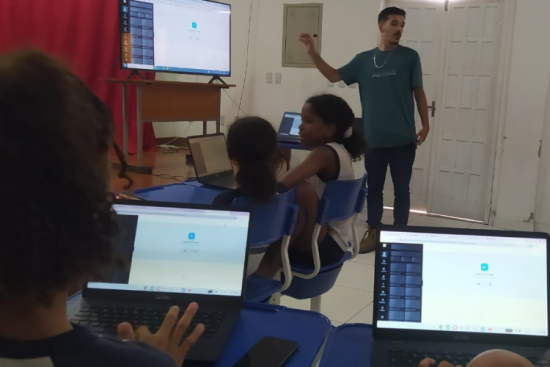 Alunos da Escola Municipal Alcebíades Candiano, em Ponta da Lama, participaram, na última semana, de uma oficina de edição de vídeo com o editor de imagens João Marvila, que integra o setor de Mídias Digitais da Secretaria de Educação, Ciência e Tecnologia (Seduct). A programação faz parte do projeto AdoleScER no Cinema.