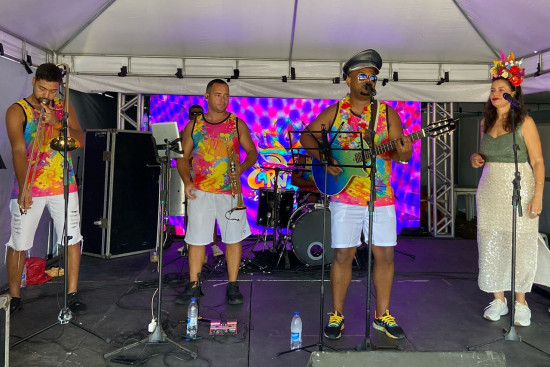 A Atuais Banda Show se apresentou, na tarde desta segunda-feira (3), na Tenda Cultural de Farol de São Tomé, na penúltima matinê do “Carnaval de Todos Nós 2025”. Oferecida pela Prefeitura de Campos, via Fundação Cultural Jornalista Oswaldo Lima (FCJOL), a programação terminará nesta terça-feira (4), às 15h, com Carol Travassos.