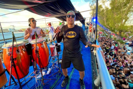 Vestido de Batman, o cantor fez os foliões dançarem com os melhores sucessos da música baiana, como “Ara Ketu Bom Demais” e “Energia de Gostosa”, e também autoral, como “Meu avião”