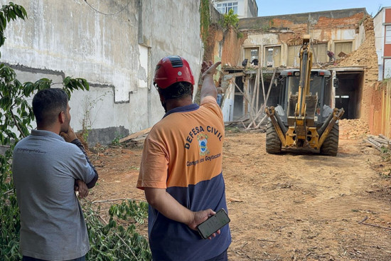 Defesa Civil acompanha demolição emergencial de prédio no Centro da cidade