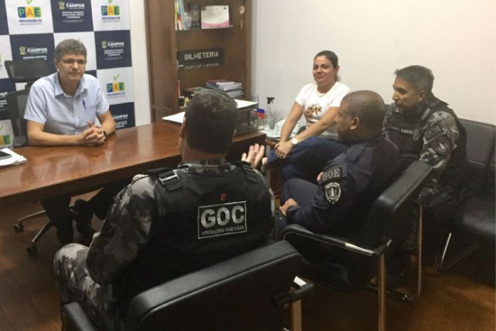 O secretário municipal de Educação, Ciência e Tecnologia, Marcelo Feres, e a subsecretária de Educação, Rita Abreu, realizaram reunião, na última semana, com representantes da Guarda Civil Municipal, visando ampliar a parceria com o órgão, para segurança nas unidades escolares da rede municipal de ensino. O encontro aconteceu na sede da secretaria e contou com a participação do gerente da Ronda Ostensiva Municipal, Antônio Soares; coordenador da parte social do Grupamento de Operações com Cães (GOC), Ítalo Augusto; e o Guarda Carlos Adalberto Lages.