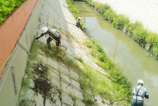 Uma equipe especializada em rapel da Secretaria de Serviços Públicos realizou, nesta semana, a retirada de vegetação dos vãos do canal Campos-Macaé, na Avenida José Alves de Azevedo, no Centro de Campos. A equipe formada por seis homens limpou toda a extensão, de cerca de 900 metros.