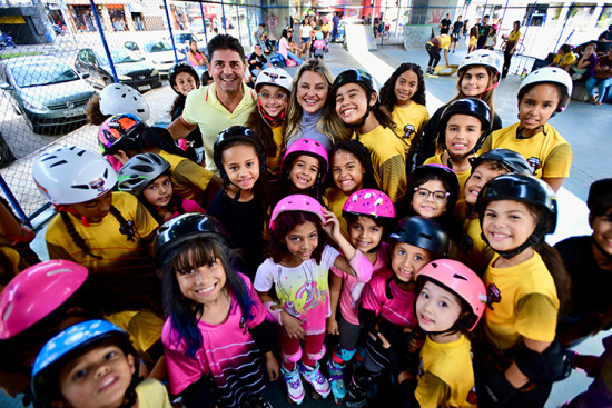 Primeira-dama participa de festa de turmas da patinação da FME pelo Dia das Mães