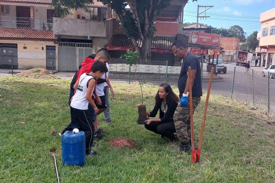 Equipes do CEA e alunos do Ciep Wilson Batista plantam árvores no Parque Guarus