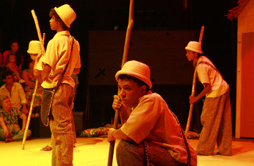 Os espectadores assistiram ao espetáculo no palco, já que a montagem utiliza o formato de teatro de arena. Em cena, alunos do curso de teatro da Fundação Zumbi e estudantes da rede municipal de ensino, sob a direção de Luciano de Paula. O elenco tem 20 atores, com idades variadas, dando vida aos personagens do texto de João Cabral de Melo Neto. A montagem é resultado de um amplo trabalho de pesquisa. Após a encenação, elenco e julgadores participaram de um bate-papo, no foyer do Trianon.