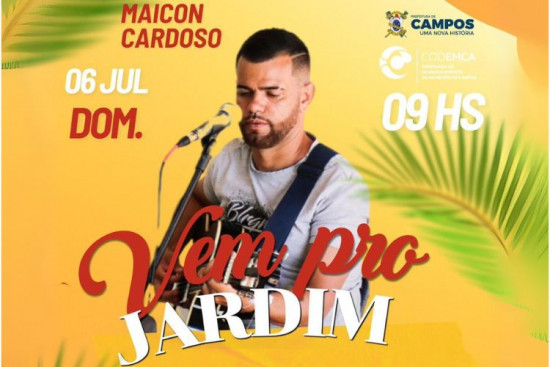 “Vem pro Jardim” acontece neste domingo com show do cantor Maicon Cardoso