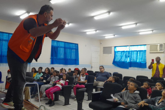 Equipe da Secretaria de Meio Ambiente e Sustentabilidade também promoveu palestra sobre coleta seletiva para os alunos da unidade que recebe a 19° edição do Prefeitura em Ação, na Penha