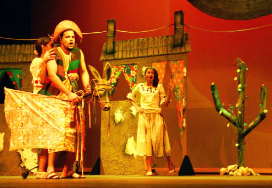 Duas divertidas histórias com sabor nordestino compuseram o espetáculo “Graça e Desgraça em Olho D’Água das Pombas”, com alunos do curso de teatro do Centro Cultural Sobradinho, de Quissamã, apresentado na manhã desta quarta-feira (05), no Teatro Trianon. A montagem concorre na categoria Adulto do II Festival Estudantil de Teatro de Campos (Fetec).