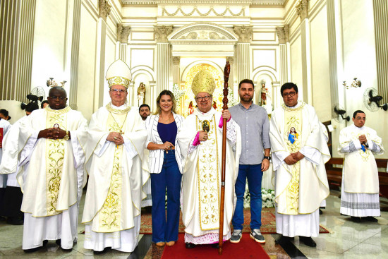 Campos dos Goytacazes celebra, nesta quarta-feira (6), seu padroeiro, o Santíssimo Salvador. A Santa Missa Solene dos 373 anos da festa, presidida pelo Bispo Diocesano, Dom Roberto Francisco Ferrería Paz, foi celebrada às 10h, na Catedral. Juntos, autoridades e fiéis lotaram a igreja, renovando sua devoção ao Cristo Salvador. O prefeito Wladimir Garotinho participou da celebração, acompanhado da primeira-dama Tassiana Oliveira.