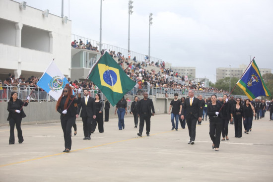 O tradicional Desfile Cívico-Militar da Independência do Brasil, realizado neste domingo (7), em Campos, lotou o Centro de Eventos Populares Osório Peixoto (Cepop). O prefeito Wladimir Garotinho, acompanhado da primeira-dama Tassiana Oliveira, acompanhou todo o ato cívico, que nesre ano chamou atenção para o tema "Mudanças Climáticas: causas, efeitos e consequências", trazendo a pauta ambiental para discussões.