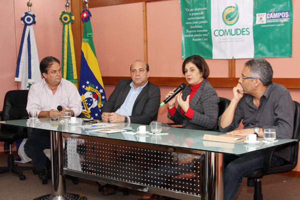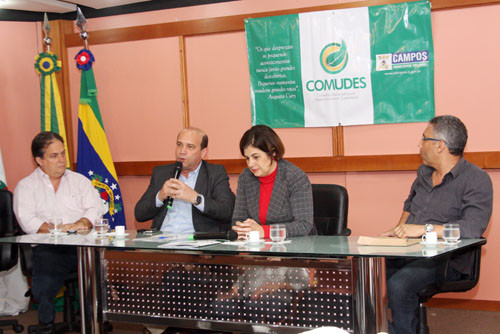 A Prefeita de Campos e presidente do Conselho Municipal de Desenvolvimento Sustentável (Comudes), Rosinha Garotinho, mobilizou nesta terça-feira (11), a sociedade civil organizada para o movimento em defesa dos royalties do petróleo, que acontece na próxima segunda-feira (17), às 16h, na Cinelândia, no Rio de Janeiro. A reunião do Comudes foi realizada no auditório do Centro administrativo José Alves de Azevedo, sede da prefeitura, e também contou com a participação do vice-prefeito, Doutor Chicão.