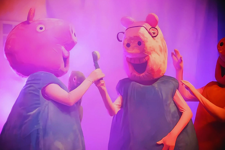 PEPPA PIG — No espetáculo, a porquinha mais amada do mundo, encara uma super aventura, em busca da realização de um grande sonho. Juntamente com a ajuda de toda sua família, Peppa tenta elaborar um número de dança para o dia de sua grande apresentação artística. No texto original proposto em cena, aborda-se a importância de respeitar os pais, de ter uma alimentação saudável, dos estudos, da higiene, da atividade física, do amor e respeito ao próximo, e até da sustentabilidade.