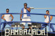 Bonde Brasil é a banda que anima a galera no Lagamar, no começo da tarde deste domingo (23), antes dos trios elétricos percorrerem a orla de Farol...